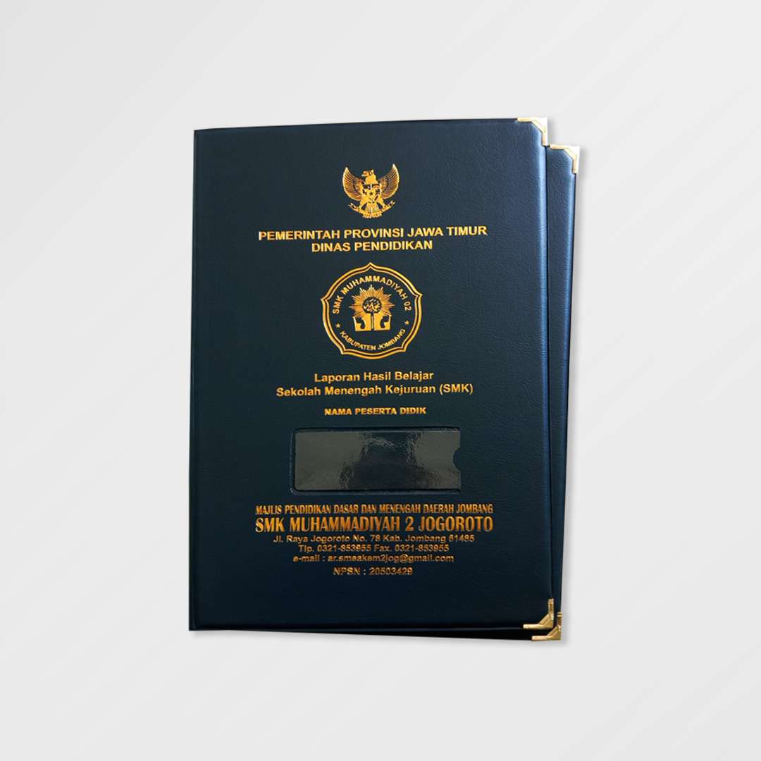 Map K13 dengan code MK 04168 adalah sebuah sampul untuk melindungi dokumen. Manfaat lain dari map yaitu untuk membuat tampilan dokumen lebih menarik serta melindungi dokumen dari kerusakan. Map menjadi salah satu produk yang sering dipakai karena ijazah atau raport merupakan salah satu dokumen yang paling penting. Alhamdulillah SMK MUHAMMADIYAH 2 JOGOROTO mempercayakan KIOSMAP untuk andil sebagai pembuat map K13 untuk menyimpan dokumen hasil belajar siswanya. Dengan kualitas sebegai berikut: