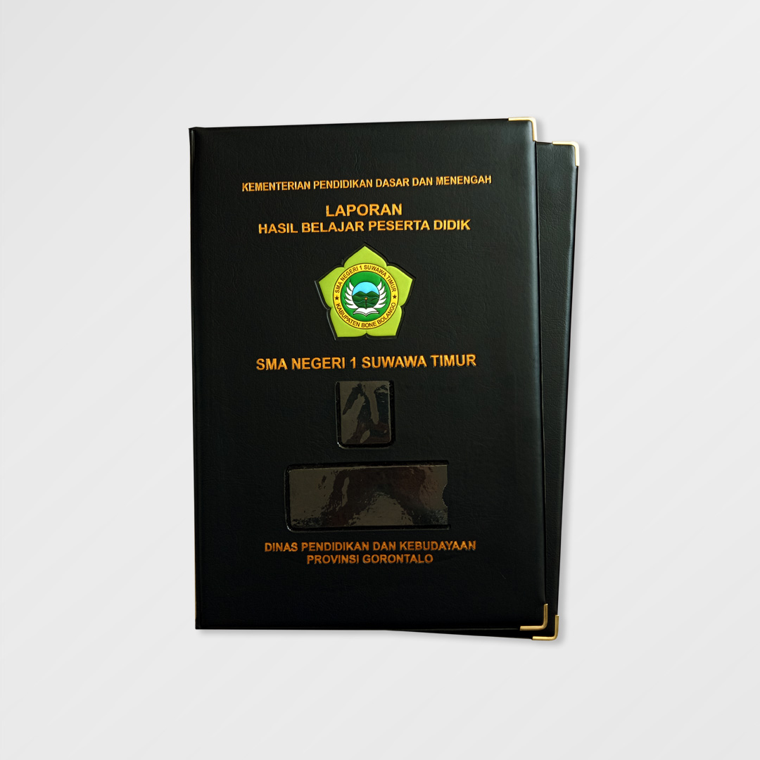 Map Raport dengan code MR 01167 mempunyai peran khusus untuk melindungi dokumen. Map dapat membuat lembaran raport tetap rapih tanpa lipatan-lipatan jika kita menyimpannya dalam map. Karena map mempunyai peran penting SMA NEGERI 1 SUWAWA TIMUR mempercayakan KIOSMAP untuk andil sebagai pembuat map raport untuk menyimpan hasil belajar siswanya. Dengan kualitas sebegai berikut: